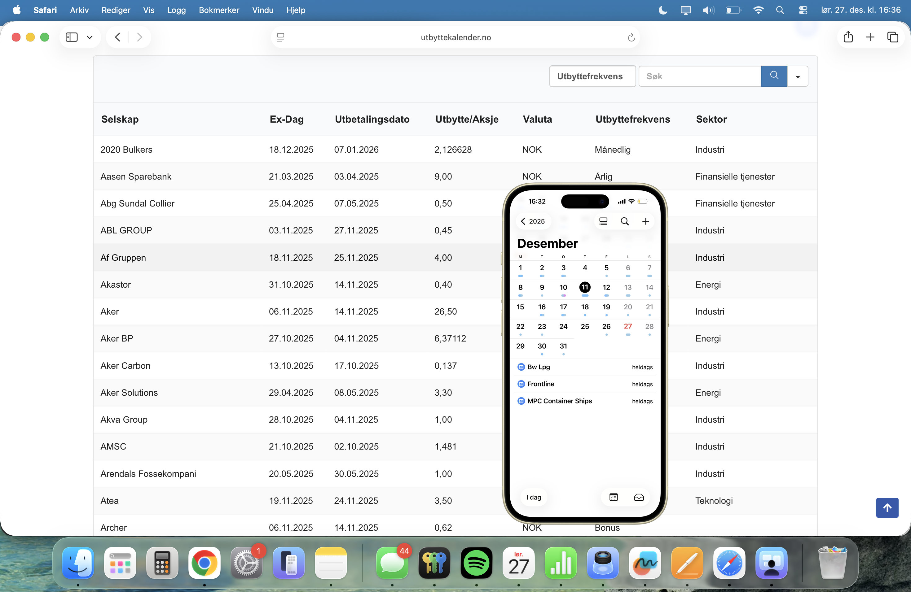 Utbytte Kalender